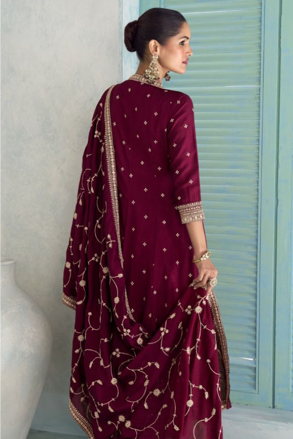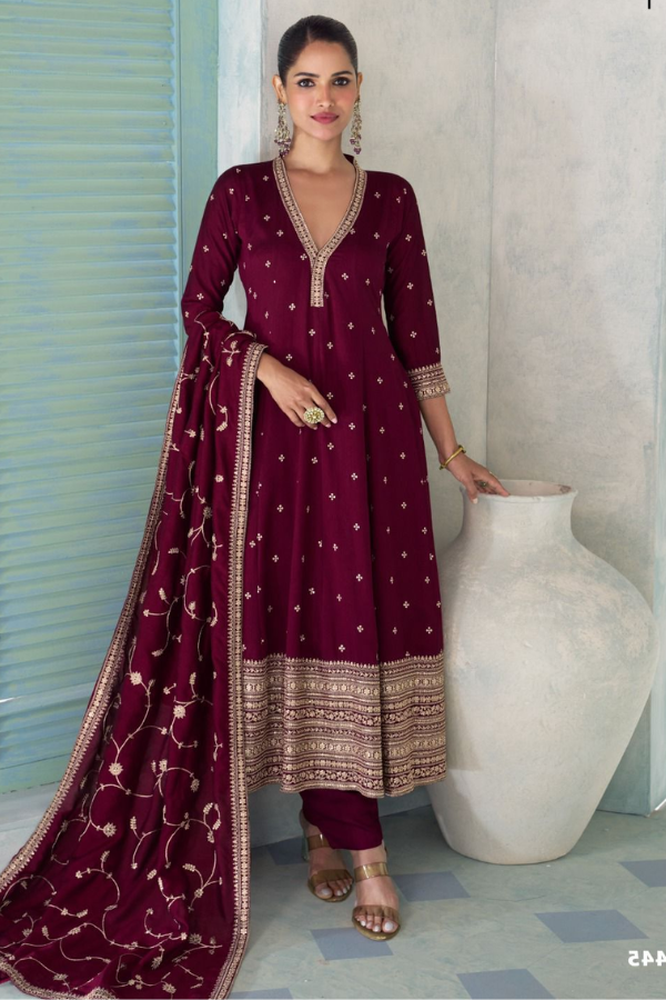 Regal Maroon Premium Silk Anarkali Suit Set with Embroidered Dupatta