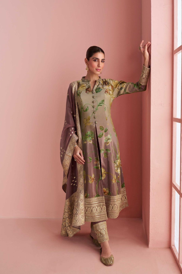 Designer Real Premium Silk Embroidered Suit Set with Jacquard Dupatta (Purple Mauve & Mauve Taupe)
