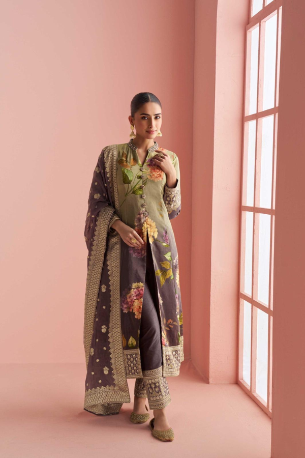 Festival Collection – Fancy Silk Embroidered Suit Set with Cutwork Net Dupatta & Divider Palazzo