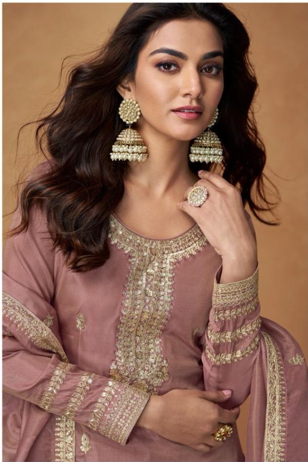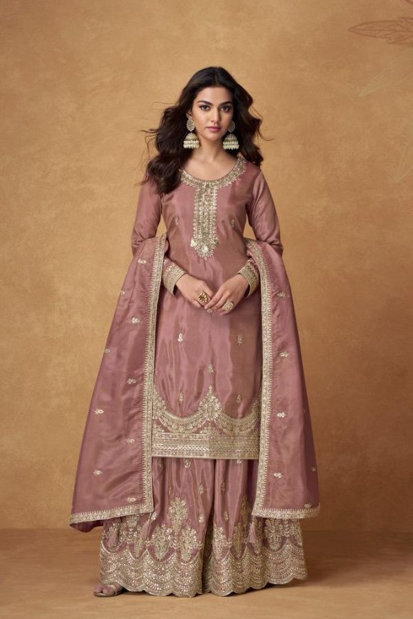 Royale – Dusty Rose Pink Organza Silk Suit | Free Size XL (Chest 42″)