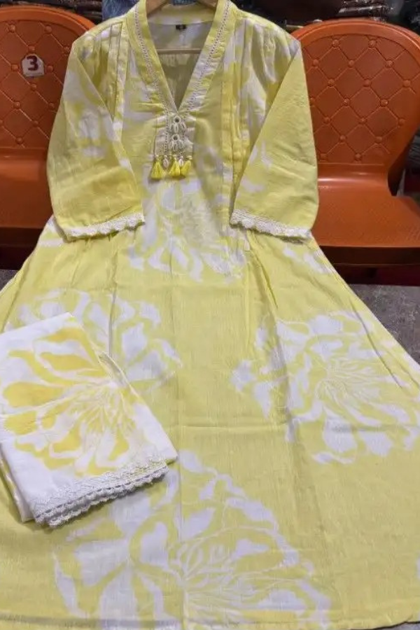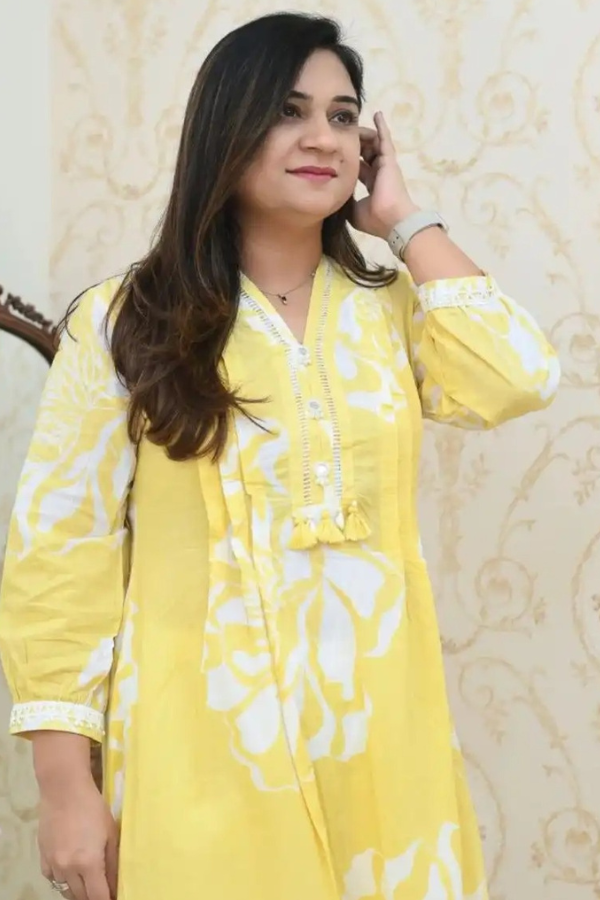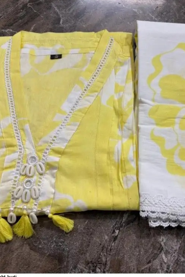 Featuring a gently flared silhouette and delicate hand embroidery on the neckline, this kurta set embodies timeless charm. Available in vibrant Yellow and Pink shades, it’s designed to flatter all body types with sizes ranging from M (UK 8) to XXXL (UK 16).