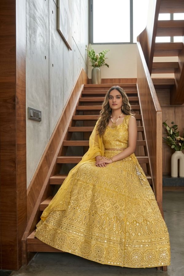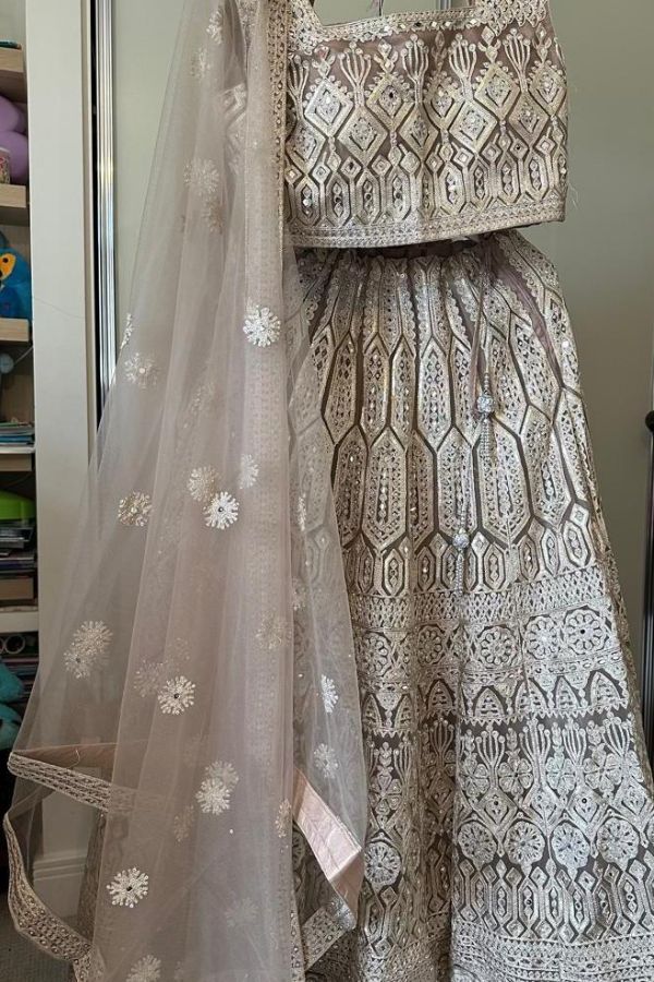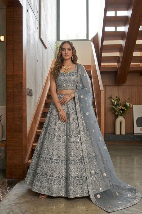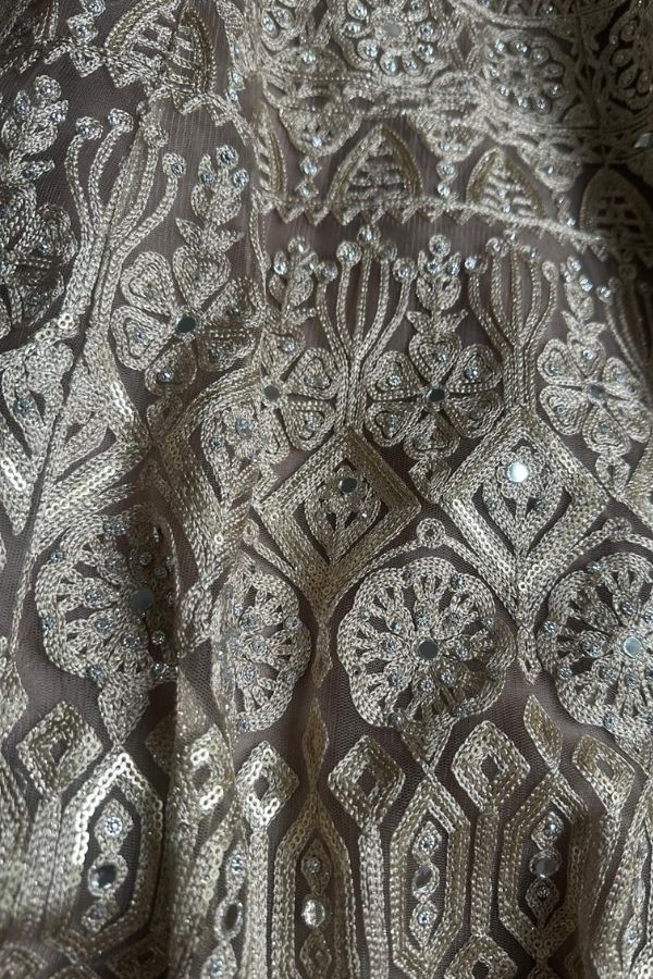 Step into timeless elegance with this luxurious Net Lehenga, beautifully designed to capture the essence of traditional Indian and Pakistani wedding fashion. Crafted with fine net fabric, this outfit features intricate embroidery and mirror work that adds a rich, royal touch to your overall look.