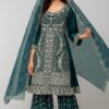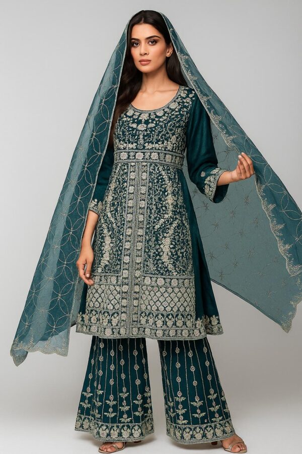 Elevate your festive and party look with this exquisite 3-piece Pakistani/Indian party wear dress, crafted with intricate embroidery, stone, and jarkan work for a luxurious appeal. Available in Teal Blue, Blue, Maroon, and Pink, this ensemble is designed to make a statement at weddings, festive celebrations, and special occasions.