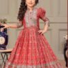 Elevate your little one’s festive wardrobe with this stunning gown, crafted from heavy Chinon silk, featuring intricate digital prints and exquisite sequin embroidery work. Designed to make your child shine, this gown is perfect for special occasions and celebrations. The gown comes with a matching heavy net dupatta, adorned with a delicate lace border, adding a touch of elegance to the ensemble.