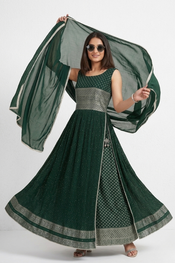 Whether it’s a wedding, festive celebration, or a grand event, this JANKI Anarkali Set ensures you radiate elegance and grace with every step. Pair it with statement jewelry and classic heels for a royal finish.