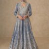 Unveil timeless elegance with our JANKI Ready-to-Wear Anarkali Set, a stunning addition to our premium festive collection. Crafted from luxurious Chinnon silk, this captivating blue ensemble features intricate embroidery, detailed craftsmanship, and a graceful silhouette that embodies royal sophistication.