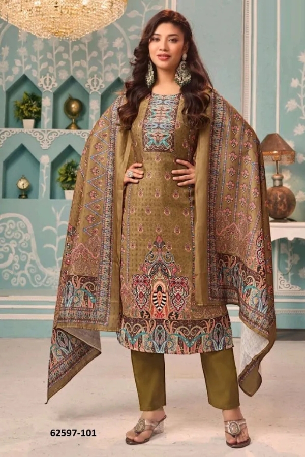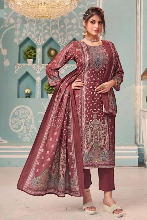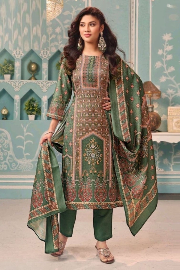 Made from premium Pashmina fabric, each suit offers a soft feel, graceful fall, and all-day comfort while showcasing rich traditional prints and intricate detailing.