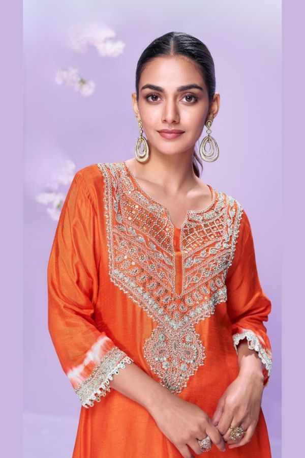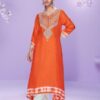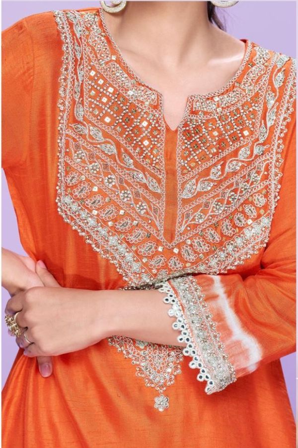 Elevate your ethnic wardrobe with this luxurious silk kurti, crafted from premium real silk for a rich and elegant feel. Designed in the latest trendy embroidered kurti style, it features delicate hand moti (pearl) detailing that adds a touch of sophistication.