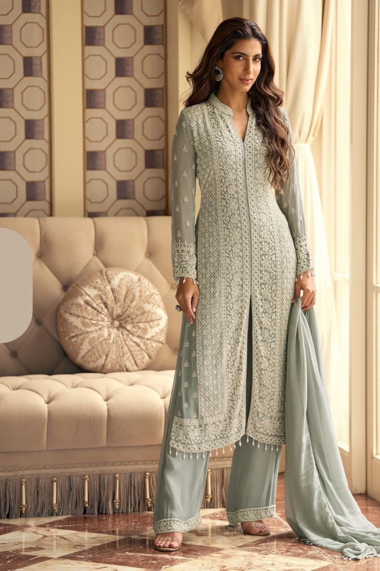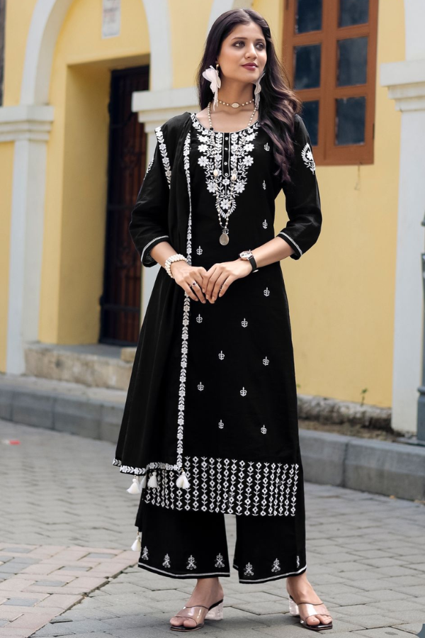 Type: Heavy Embroidered Top, Plazzo Pant & Dupatta (3-Piece Set)